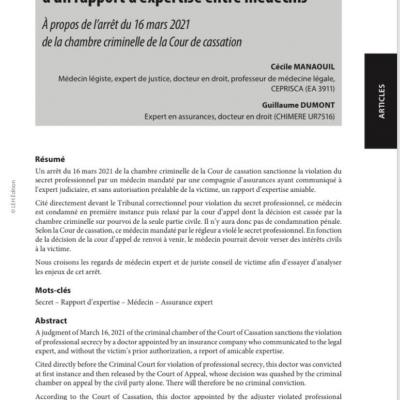 SECRET MÉDICAL ET EXPERTISES RÉALISÉES À L’INITIATIVE D’UN ASSUREUR OU D’UNE JURIDICTION, À LA LUMIÈRE DE TROIS ARRÊTS RENDUS PAR LA COUR DE CASSATION EN 2021